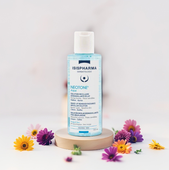 Solución micelar suave que limpia y desmaquilla piel sensible propensa a manchas. Aclara y unifica el tono gracias a Diacetyl Boldine, extracto de regaliz y niacinamida. CAJA UN POCO DOBLADA