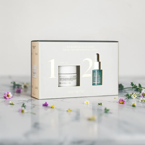 Pack de iniciación al retinol: incluye crema Sensilis Eternalist A.G.E. Retinol 50 ml que retexturiza, suaviza arrugas, hidrata y unifica, y Skin Rescue Sérum S.O.S. 15 ml que calma y repara.